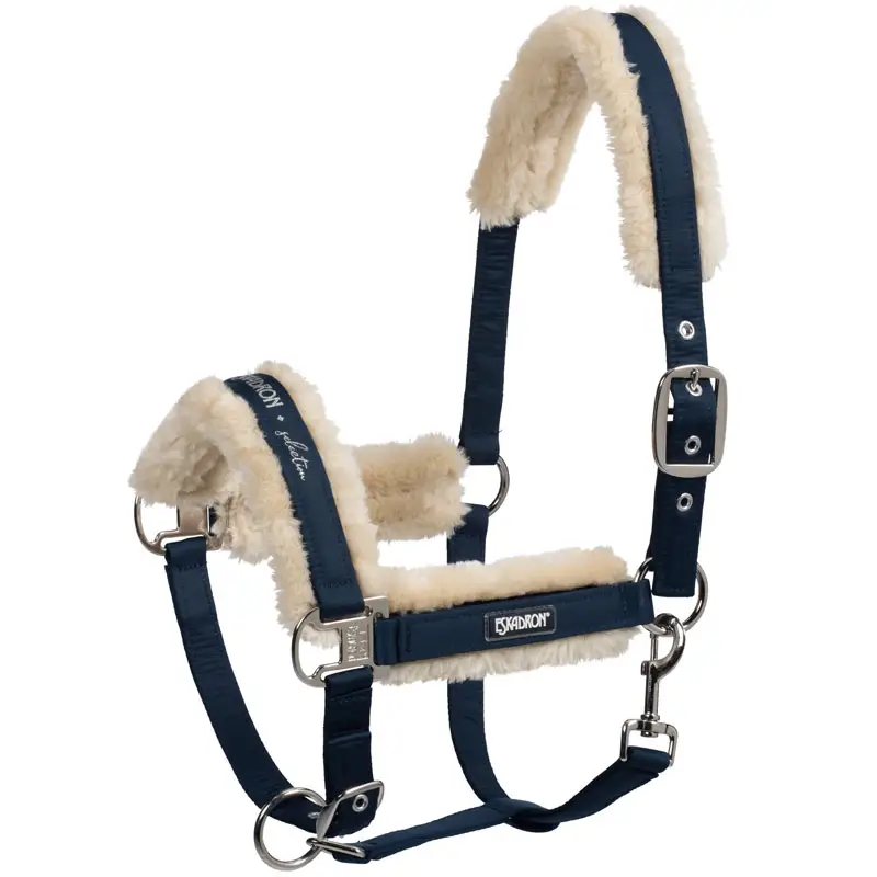 High quality imitation lambskin lined halter made of Glossy material with an adjustable noseband and an adjustable headpiece. The lambskin is removable, so it can easily be washed in the washing machine.