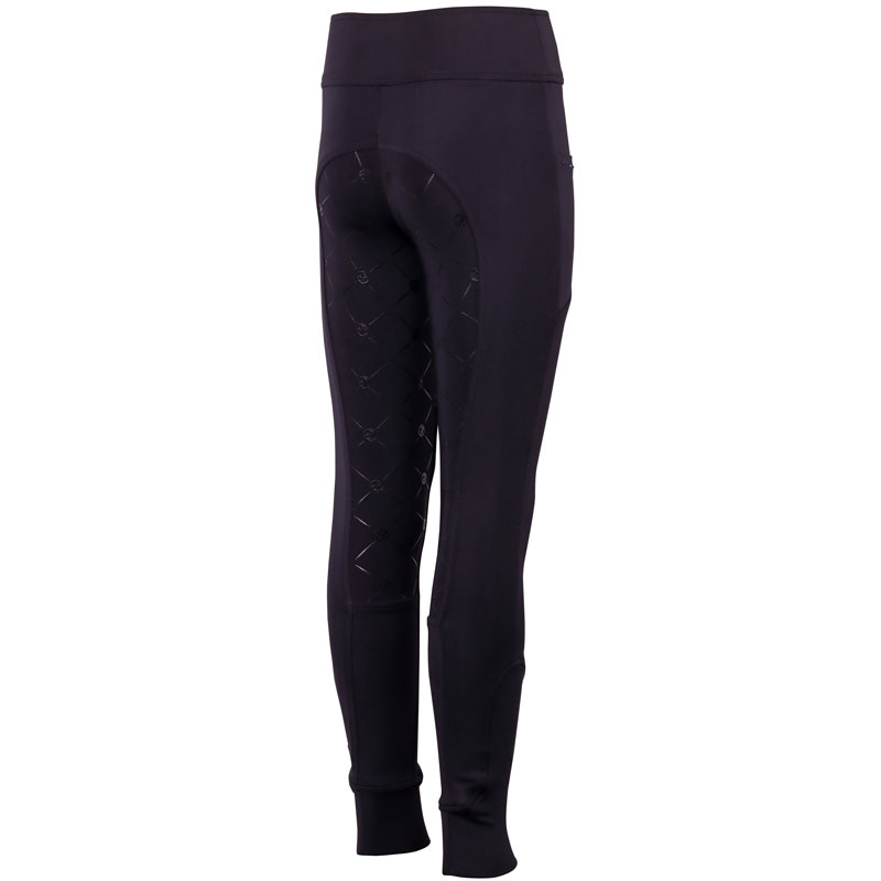 Harry's Horse Equitights Rookie Full Grip Kids Navy. Children's riding leggings made of stretchy polyester fabric with two pockets, one with a zipper and both finished with subtle crystal stones.