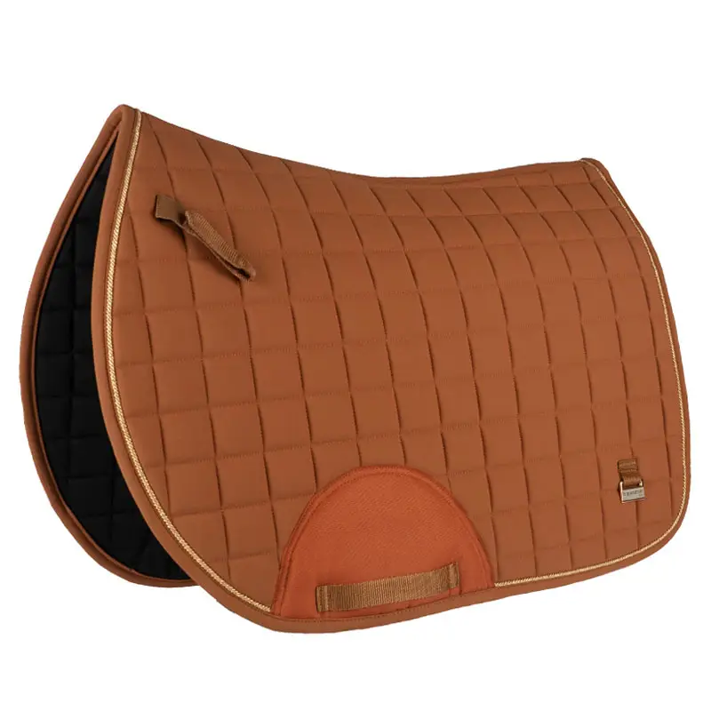 The Horka Saddle Pad Deluxe ginger/rose gold has an anatomical fit and is equipped with a Quick Dry lining which ensures optimum comfort in combination with a technical material on the outside. The pad is finished with cord piping and metal “Equestrian Pro” badge on the left side.