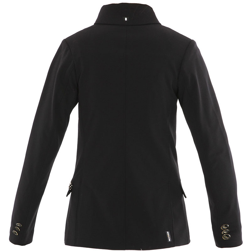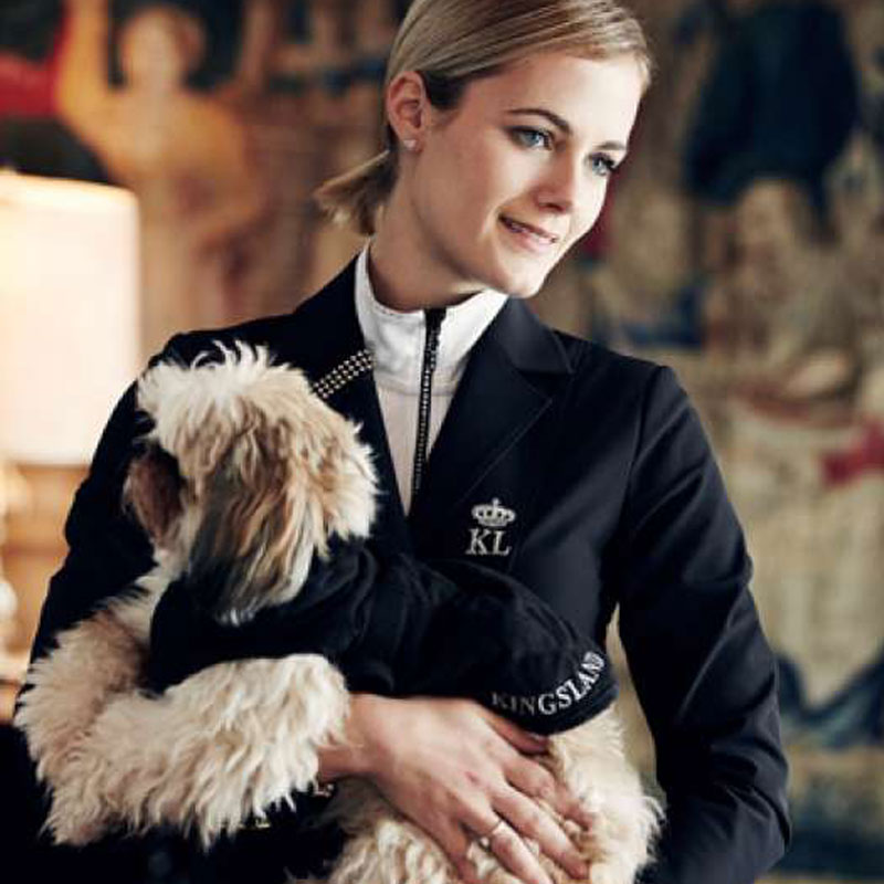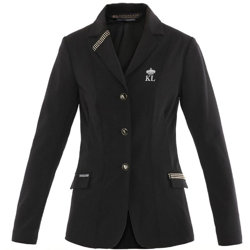 Kingsland competition jacket Milano is made of a high quality Shoeller softshell. The material is water-repellent, breathable, elastic and has a high wearing comfort. The jacket has a button closure and an embroidered Kingsland logo on the right flap pocket and an embroidered KL logo with rhinestones on the chest. The jacket is further finished with elegant studs on the collar and on the left flap pocket.
