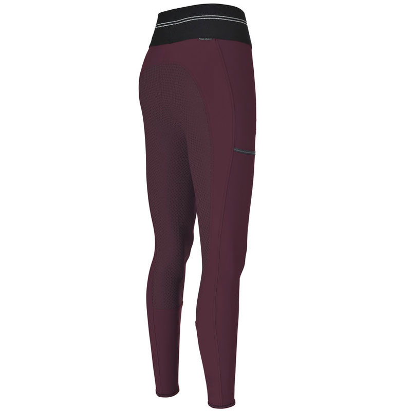 The hype of the moment are the Pull On model riding breeches, also called riding leggings. The Pikeur riding breeches Gia Grip have a wide, elastic waistband and a Full Grip seat made of polyurethane. The riding breeches have a mobile phone pocket on the right leg and are finished with Pikeur application made of glitter material on the left leg.