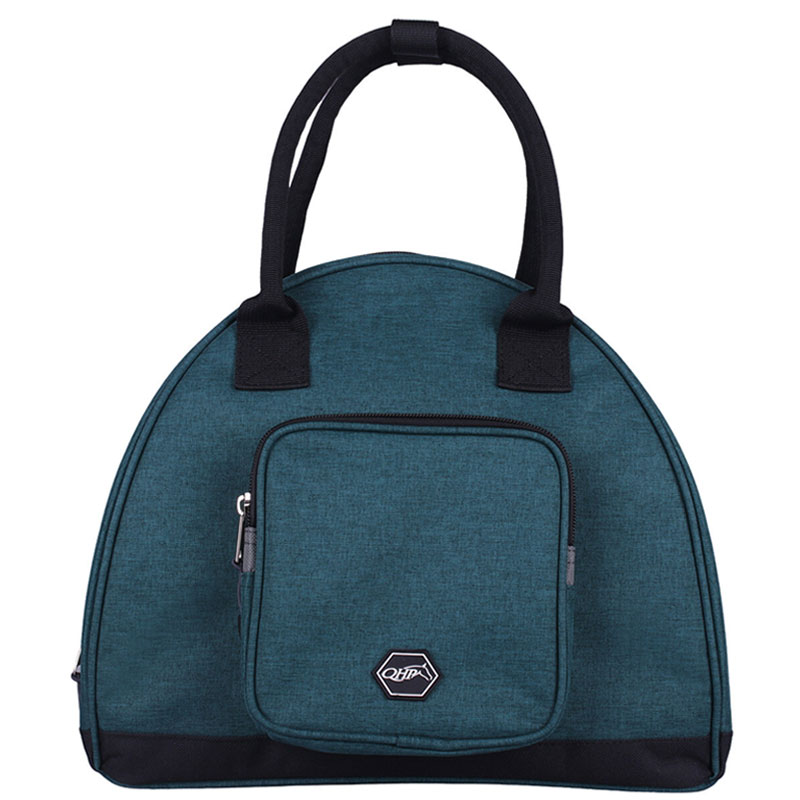 QHP helmet bag dark green. Luxury cap bag of the brand QHP with handle and compartment with zipper on the front.