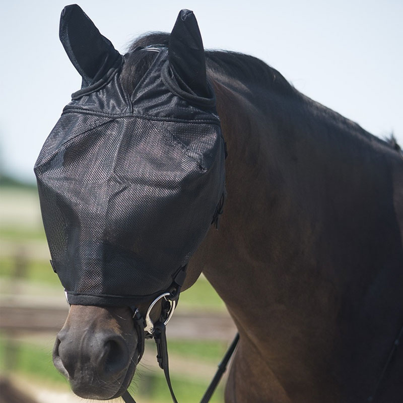 This QHP fly mask can be used while driving. The mask is easy to attach to the headpiece, cheekpieces and the noseband of the bridle. The mask is made of sturdy mesh material with fine flexible mesh around the ears.
