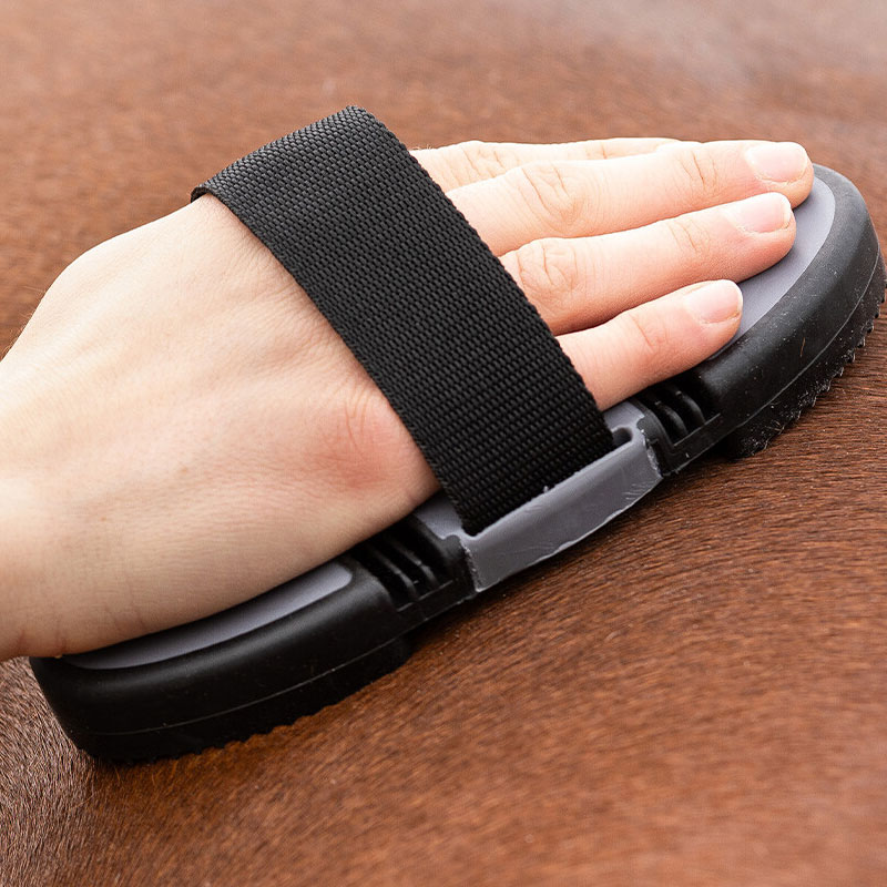 QHP Flexible curry comb Grey/Black for brushing your horse. The flexibility ensures that this brush forms to the body of your horse for easy and comfortable coat care.
