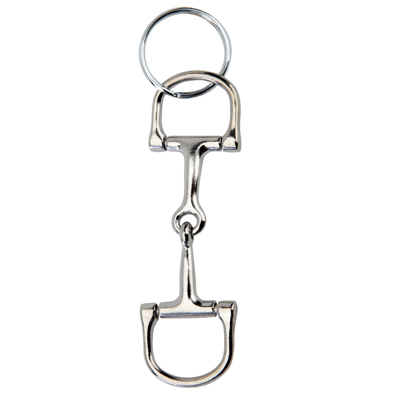 Red Horse D-Breast Keyring. Silver-colored keyring in the shape of a single jointed horse bit.
